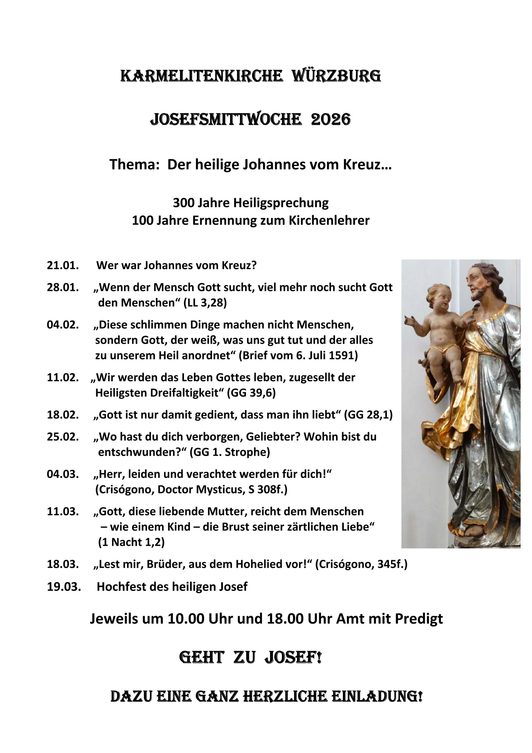 ganz herzlich laden wir zu unseren diesjährigen Josefsmittwochen und zur Feier des Hochfests unseres ersten Kirchenpatrons, des heiligen Josef, ein.